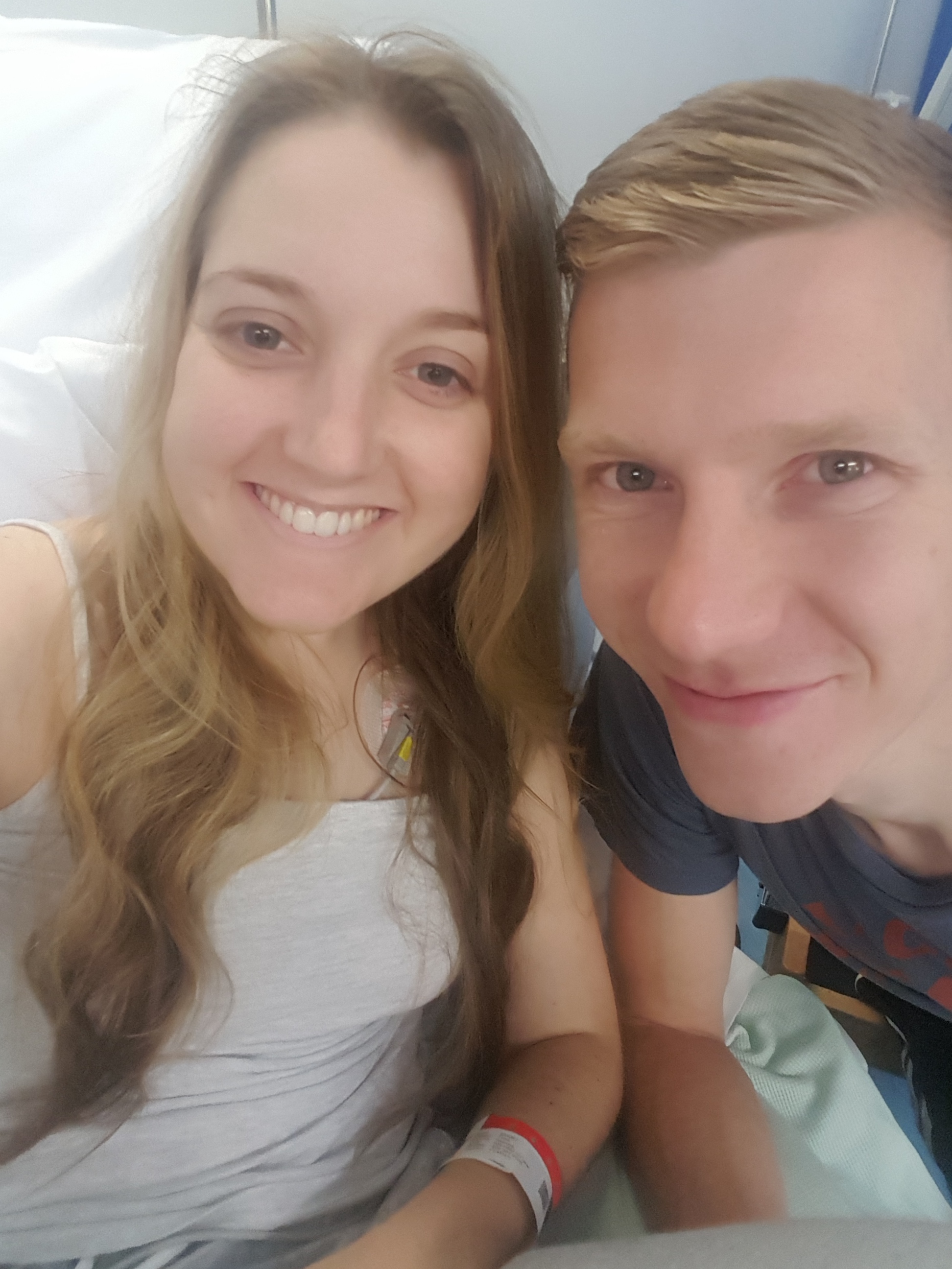 When I arrived on the ward I still couldn’t walk and I hadn’t regained full mobility in my arms, legs and back so I was in a pretty bad way. I had also just had the first hit of steroids so I probably looked quite rough and was acting a bit loopy. They were quite concerned by all accounts. My first night was not great at all and I didn’t get a second of sleep thanks to the steroids. By the morning my tummy had completely inflated, I kept passing out from low blood pressure, I was being constantly sick, and because my kidney function had dropped I had water retention all over my body. To top it off it was 30 degrees outside, we had no aircon and the steroids has caused what can only be described as an 8 hour hot flush. Waiting until 11am to see Henry and Mum felt like a lifetime and I spent the whole morning in a state of steroid-induced hysterical sobbing. My amazing nurse Frankie and the only one of us on the ward that could walk, Pamela, sat on my bed comforting me and dabbing my face with a cold flannel until they arrived.